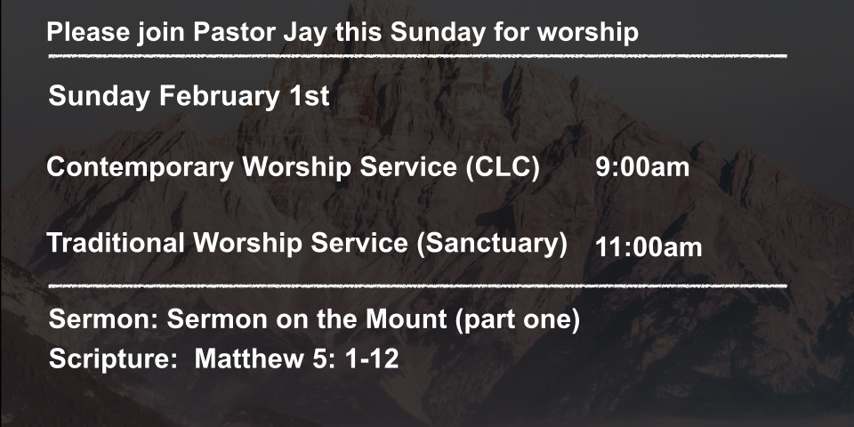 All JPC Activities have been cancelled for Sunday January 25th. Worship Service to be posted online.